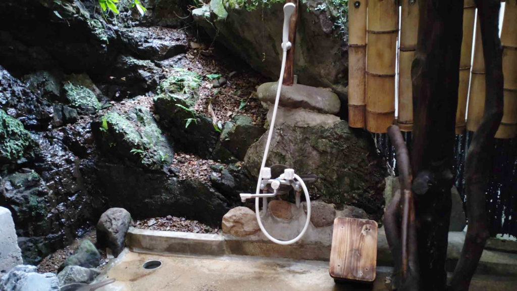 シャワーがある洗い場もありました。ダイレクトに庭と一体になってる感じの洗い場でちょっとワイルドですね。