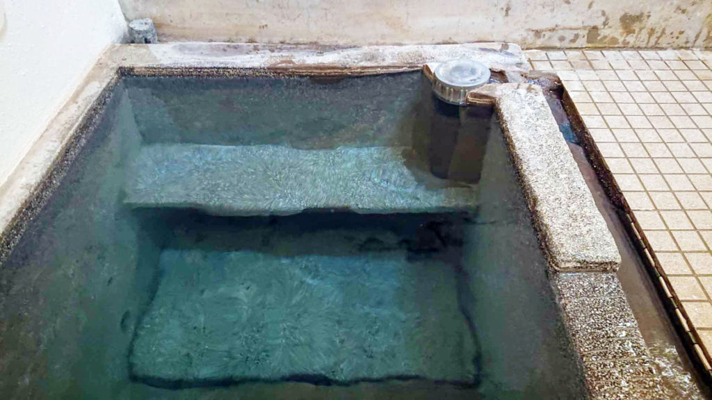 浴槽の淵にある丸い筒状の部分の穴からは常にお湯が外に排出されていてこれが源泉かけ流しで源泉が浴槽に投入されたぶんだけ浴槽に排出されているお湯のようです。このお湯が排水溝へと流れて行っていました。結構な勢いでお湯が流れて行っていたのと、入浴後に浴槽のお湯が溢れて少なくなってもすぐに満杯になっていたので源泉の投入量も多そうです。