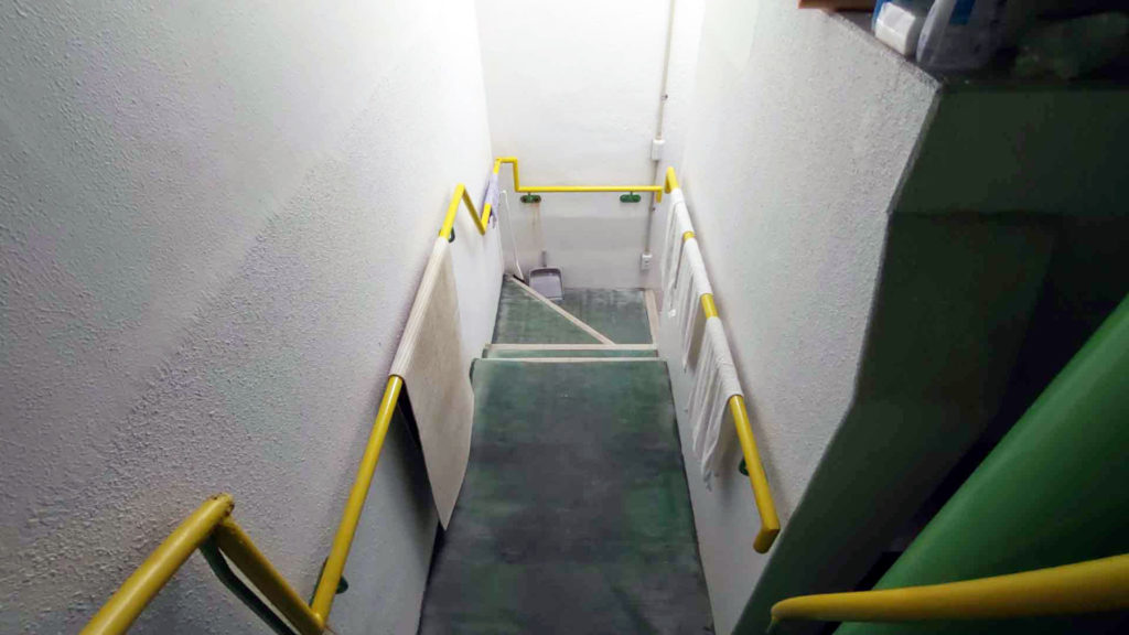入浴料の回収ボックスのすぐ横に下りの階段があります。