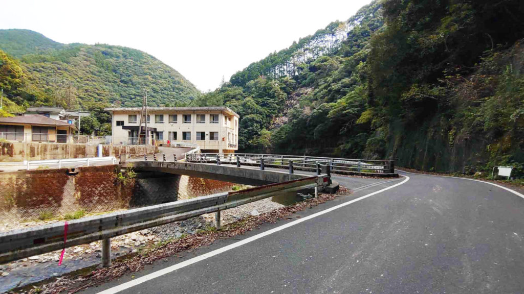 球磨川支流の吉尾川沿いの熊本県道272号を走っていくと芦北町吉尾温泉診療所という医療機関があった建物(2020年の豪雨による川の氾濫で浸水しその後閉所してしまったそうです)があるのでその建物に向かう橋を渡ります。
