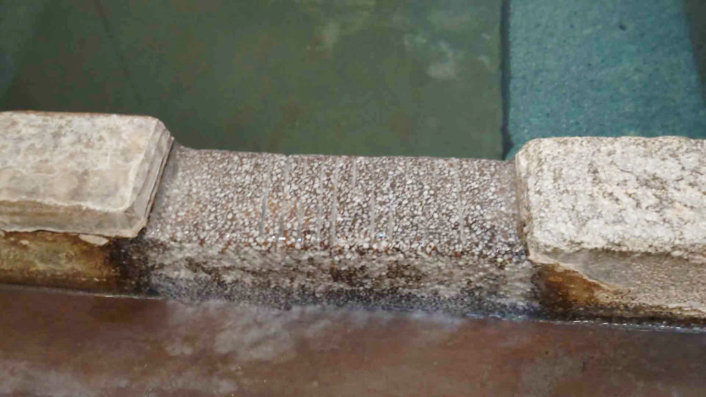 浴槽の淵の切りかけの部分からは通常時にはお湯が流れていていませんでしたが、入浴するために浴槽に入った時など一気にお湯が溢れる時にこの切り掛け部分からもお湯が溢れていっていました。