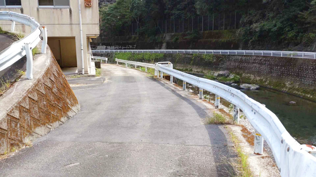 そのまま川沿いの道を建物の横を通り進んでいきます。ほんとにここを進んで大丈夫なのかなという道なのでちょっとドキドキです。