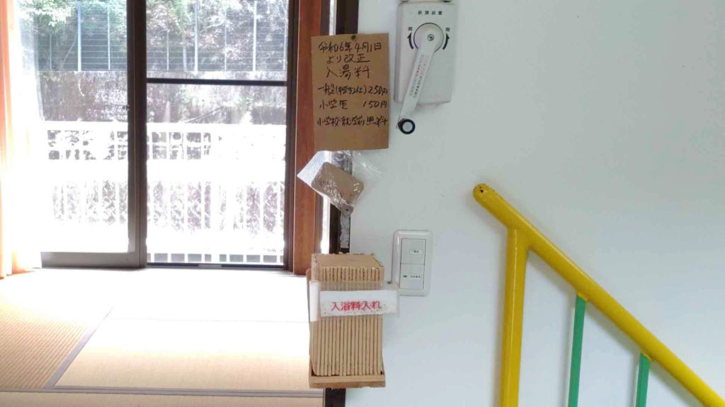 入浴料入れに入浴料を入れます。無人なので小銭を用意しておきましょう。