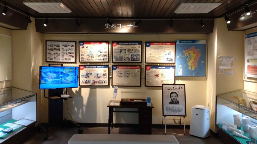 こちらは長崎税関の史料コーナー。壁には大きな年表が展示されていて税関になる前の時代から掲載されています。