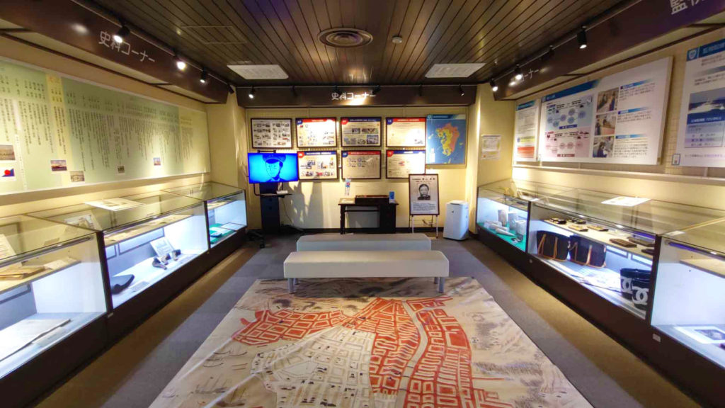 長崎税関資料展示室は1部屋の四方に展示が展開されています。中央部にはベンチも設置されていました。