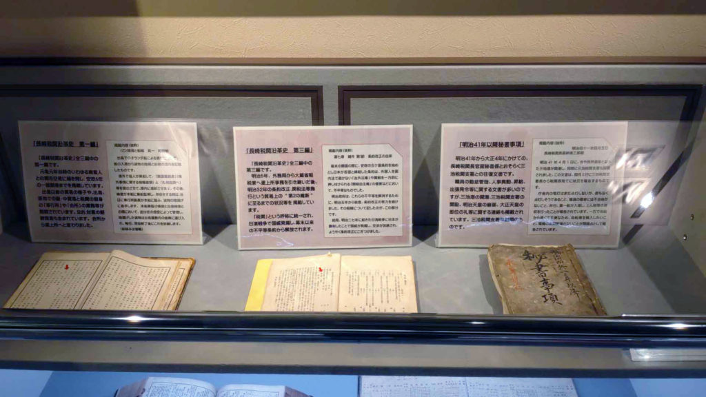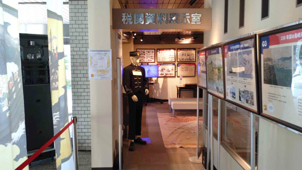 壁の角を曲がったこちらも引き続き史料コーナです。日本の税関の中でも税関になる前からの歴史がある長崎税関だけあって充実してますね。
