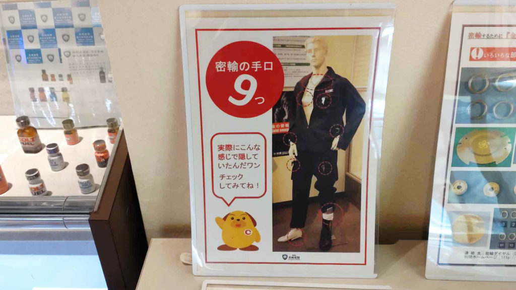 入り口側の横のスペースには密輸の手口の紹介コーナーがありました。