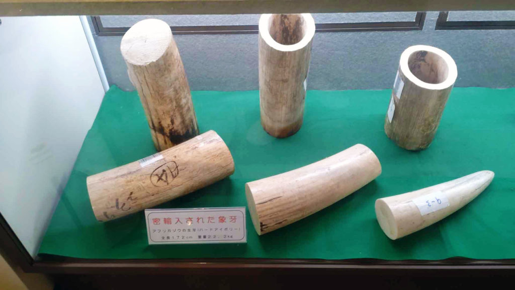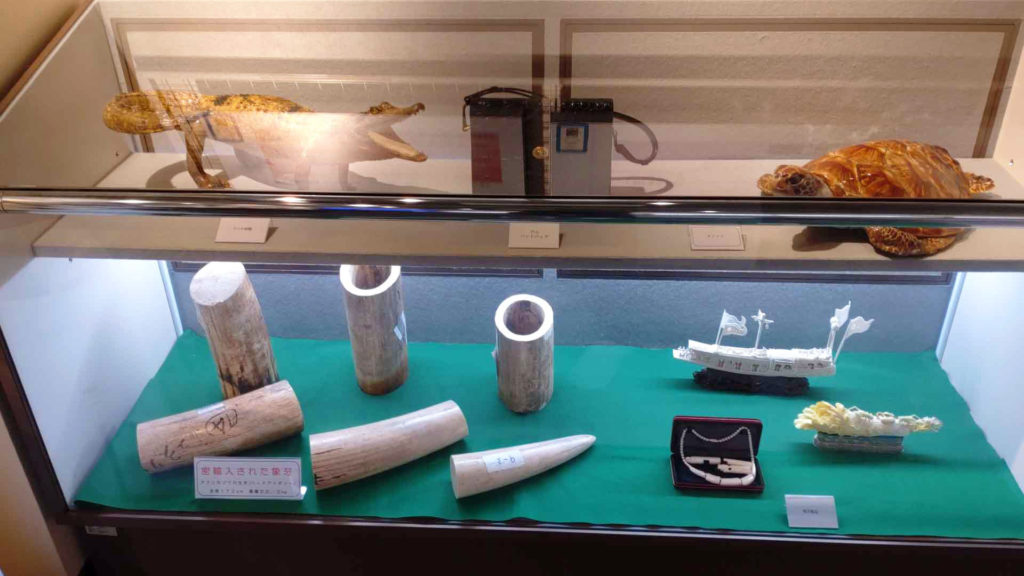 象牙製品たち。ワシントン条約規制対象種の動物たちは生死問わず輸入が規制されています。Dead or Alive。