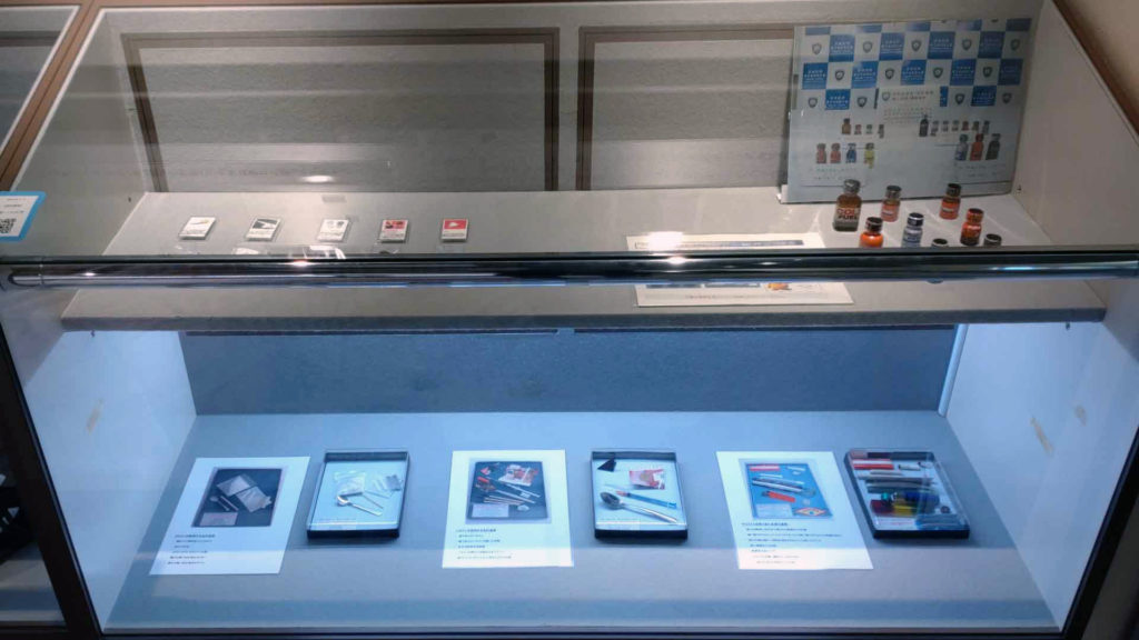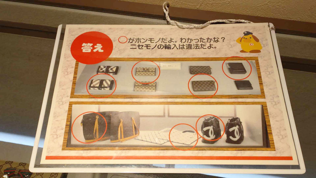 こちらは知的財産侵害物品コレクション。この本物・偽物コーナーではホンモノとニセモノが並んでいます。