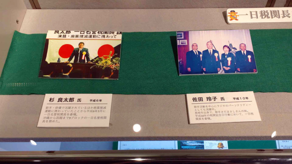 西村知美さんとマラソン選手の藤永 佳子さんも一日税関長を務めてらっしゃったようです。西村知美さんは税関150周年の年にブログでこの時の事を投稿なさってました。