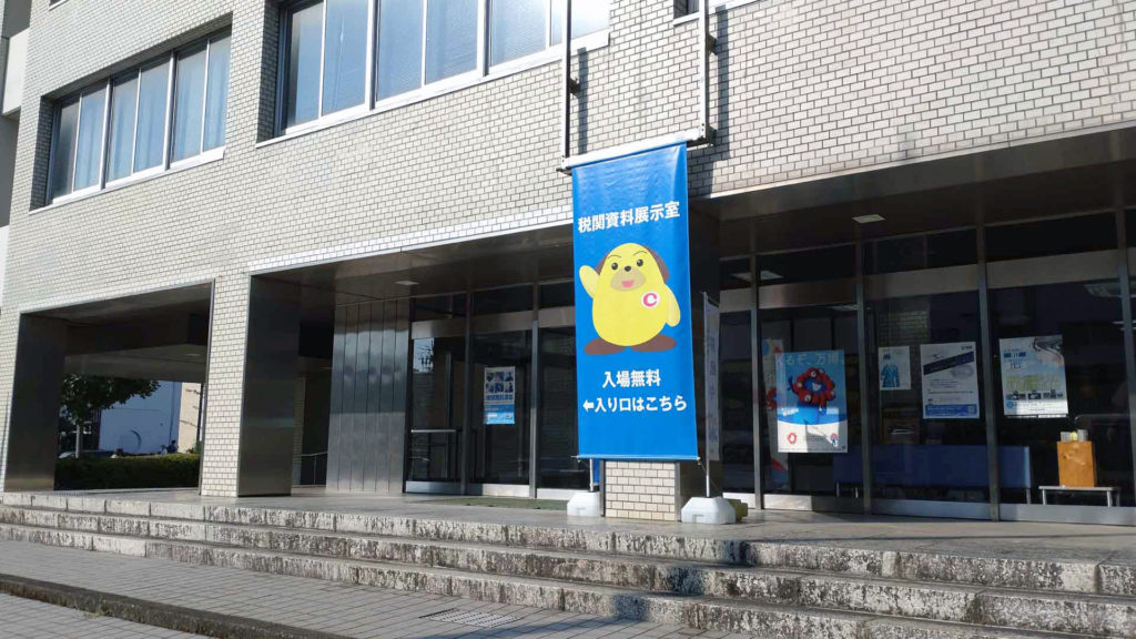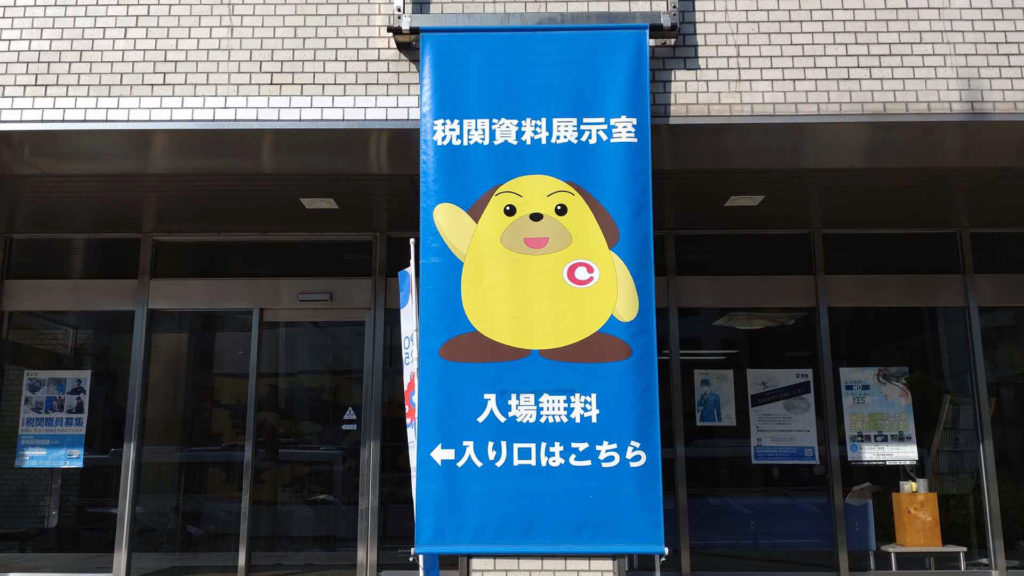 大きな懸垂幕で税関資料展示室の案内がされています。そして無料という事をアピール!むしろ埼玉から飛行機に乗ってきたくらいなので有料だったとしても入場しますよ。