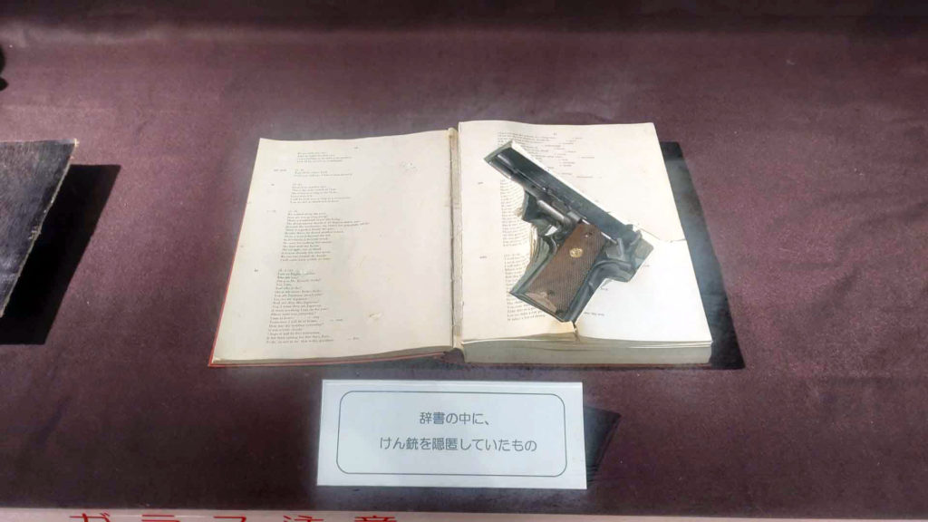 辞書の中に、けん住を隠匿していたもの。これも定番ですね。税関コレクションあるある本をくり抜いて拳銃かくしがちです。通しません黒い武器!