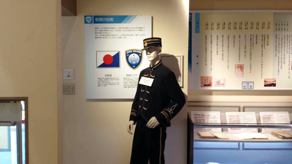 入口近くには明治時代中期の税関職員さんの制服を着たマネキンがポーズをとっていて資料展示室を訪れた人々をお出迎えしてくれます。
