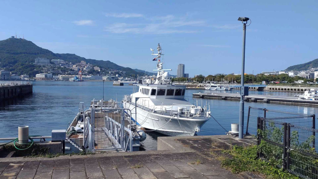 長崎税関の中型監視艇 さいかい です。さいかいは長崎県を中心にパトロールに使用されている船で2001年に鈴木造船で建造されました。明治時代の派出所があるすぐ近くに今でも税関の施設があるのはなんか良いですね。このすぐ近くに長崎港松が枝国際ターミナルという大型の豪華クルーズ船が寄港する埠頭もあるようです。