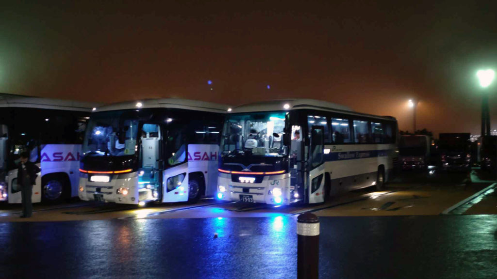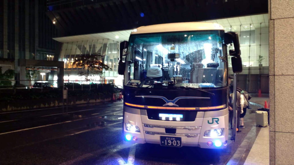 終点の東京駅前のバス停に到着です。定刻よりちょっと遅れるくらいの時間に到着でした。名古屋から東京まで乗り換えなしなのはほんと快適ですね。新幹線とか乗る人なら乗り換えなしは当たり前でしょうけど。この後東京駅で夕食を食べた後電車で埼玉の自宅まで帰りました。
