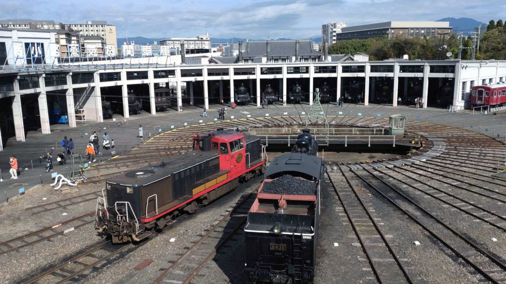 転車台と扇型車庫もあります。ここは梅小路運転区というJR西日本の車庫の一部でもあって保存されている機関車の他にJRの本線なども走行できる機関車も保管されていますがなんと車庫の中にも自由に入って蒸気機関車などのすぐ近くで見学する事もできます。ここは京都鉄道博物館ができる前は梅小路蒸気機関車館という博物館(リニューアルして今の京都鉄道博物館になった)だった場所でもあり子供の頃に行ってみたいなと思っていたのでした。