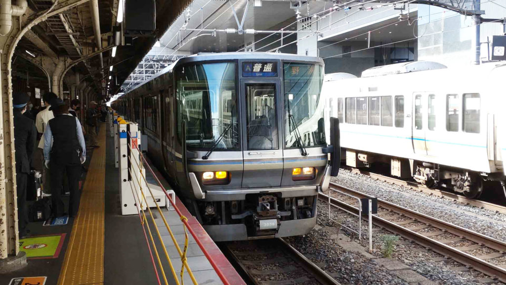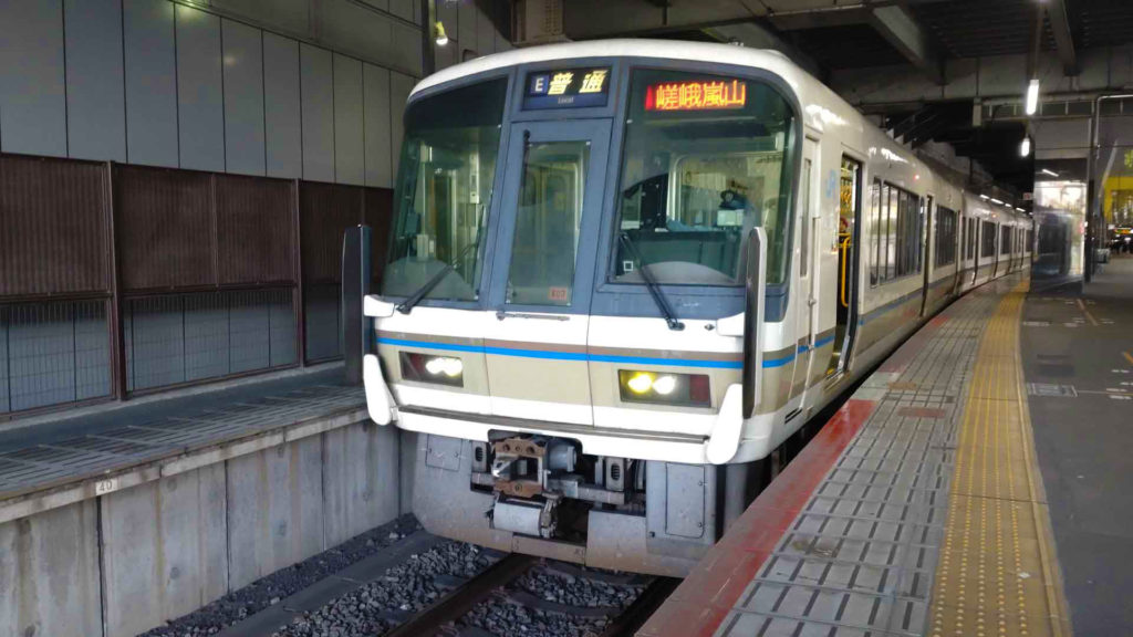 京都駅から嵯峨野線(山陰線)の列車に乗ります。車両は221系。