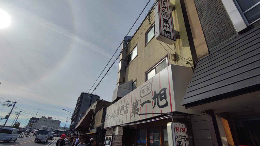 本家 第一旭 本店に来ました。こちらのお店に来たのは2回目です。朝6時から営業していますが営業時間中は行列が出来ている場合が殆のようでこの日は8時半くらいに到着して行列に1時間弱並びました。