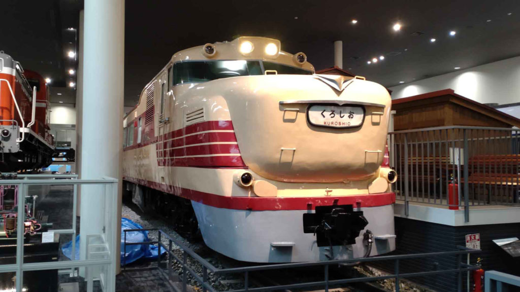 キハ80系のキハ81です。キハ80は日本初の特急用気動車で1960年にデビューしましたが、このボンネット型先頭車両のキハ81はわずかしか製造されず翌年から製造された貫通型のキハ82の方が多く製造されて全国で活躍していました。キハ81は当時の特急用電車のようなボンネットがあるデザインですが電車と比べると独特のデザインになっていてファンからはブルドックと呼ばれていたそうです。このボンネットの中には車内設備などに使われる電気を発電する発電機が設置されています。