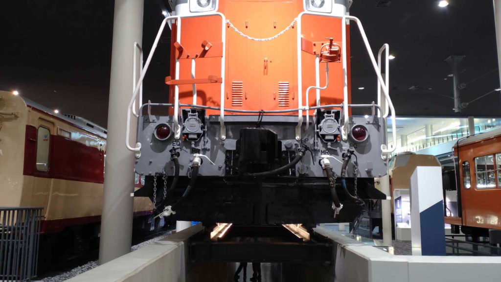 EF66もDD51と同じく高い場所に展示されて車両の下を観れるようになっていました。EF66は国鉄の電気機関車の中でも速度、牽引できる重量共に優れていて長編成のコンテナ貨物列車やブルートレインなどで使用されていました。
