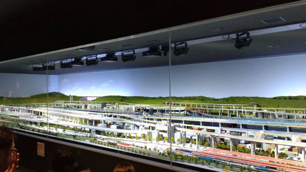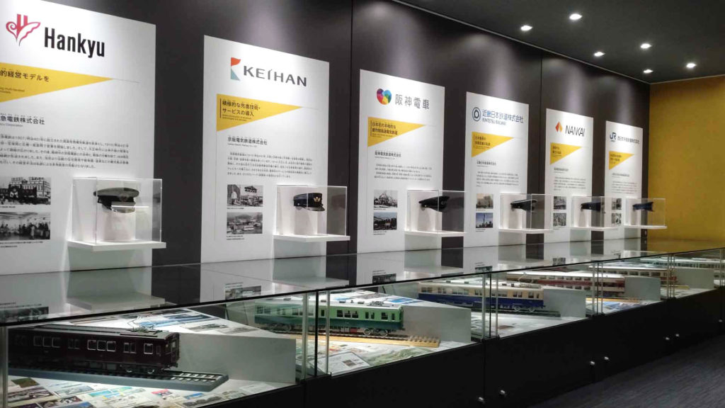 鉄道関連の博物館の定番の鉄道模型のジオラマもありました。1日に何度かオペレーターさんが運転、解説をして照明も昼や夜などを再現しながらHOゲージの鉄道模型の走行を観れるプログラムが開催されていました。JRの車両以外に関西周辺の私鉄列車の模型も走行していました。