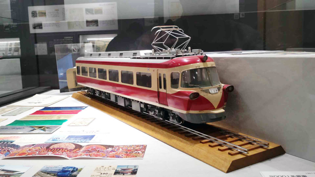 南海20000系の模型も展示されていました。高野山に向かう南海高野線の急勾配、急カーブに対応しつつ平坦な場所では速度を上げて走行する事ができるズームカーという車両の中の特急列車用の電車でデラックスズームカーと呼ばれていました。