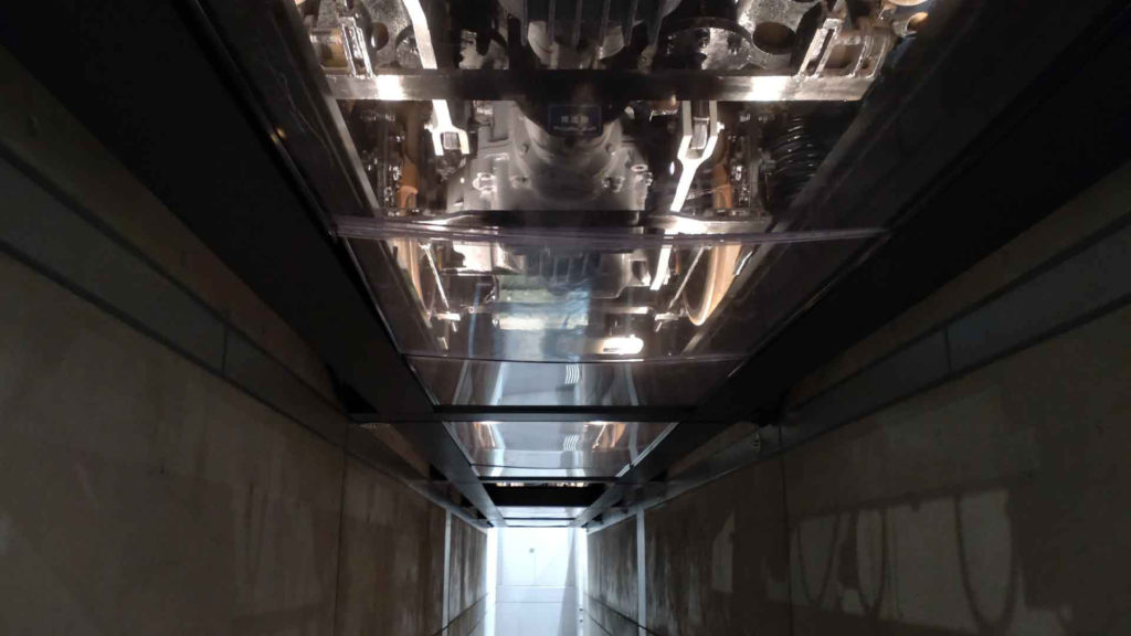 連絡デッキの途中にはSL第二検修庫という施設もあります。SL第二検修庫ではSLの解体検査を行う施設でJR西日本で動態保存している蒸気機関車の検査などが行われています。