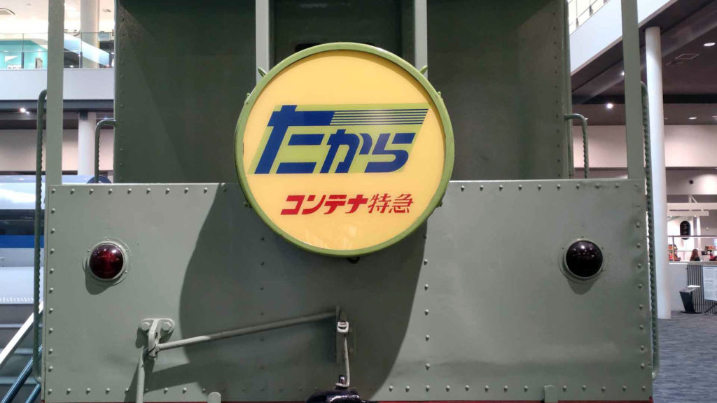 京都鉄道博物館にて保存、展示されているヨ5000は日本初のコンテナ専用貨物列車の たから号用の緑と赤の塗装(通常のヨ5000の塗装は黒一色)になっていて貨物列車には珍しい電照式テールサインも装着されています。この仕様のヨ5000は子供の頃好きで(僕が子供の頃にすでに走っていない列車でしたが)Nゲージの鉄道模型も持っていたので実際の車両を見れてテンション上がりました。