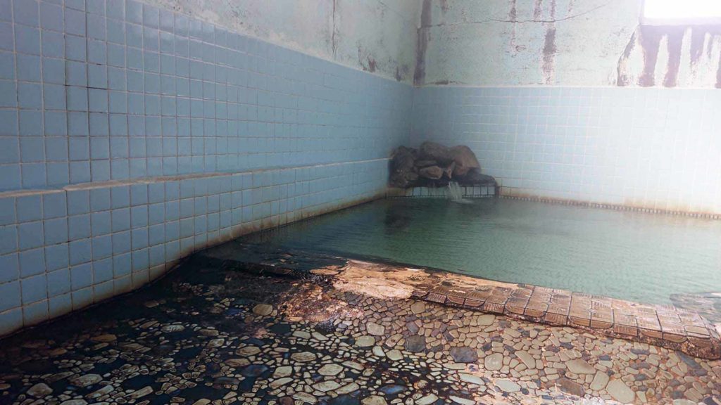 こちらの温泉は浴槽上の高い位置から滝のように源泉が浴槽に投入されています。大きめの浴槽ですが源泉かけ流しで使われててどんどんお湯が溢れ出ていってました。長時間入れるような温度のお湯はツルトロな肌触りとほのかに硫黄の香り(硫化水素の香り)もしてめちゃ気持ち良かったです。壁際には多くの洗い場が並ぶ地元密着型の共同浴場タイプの温泉施設で雰囲気も最高でした。温泉のお湯も施設の雰囲気もめちゃ好みで僕が今まで行ったことがある温泉で好きな温泉ベスト10を決めるなら絶対入れたいと思いました。