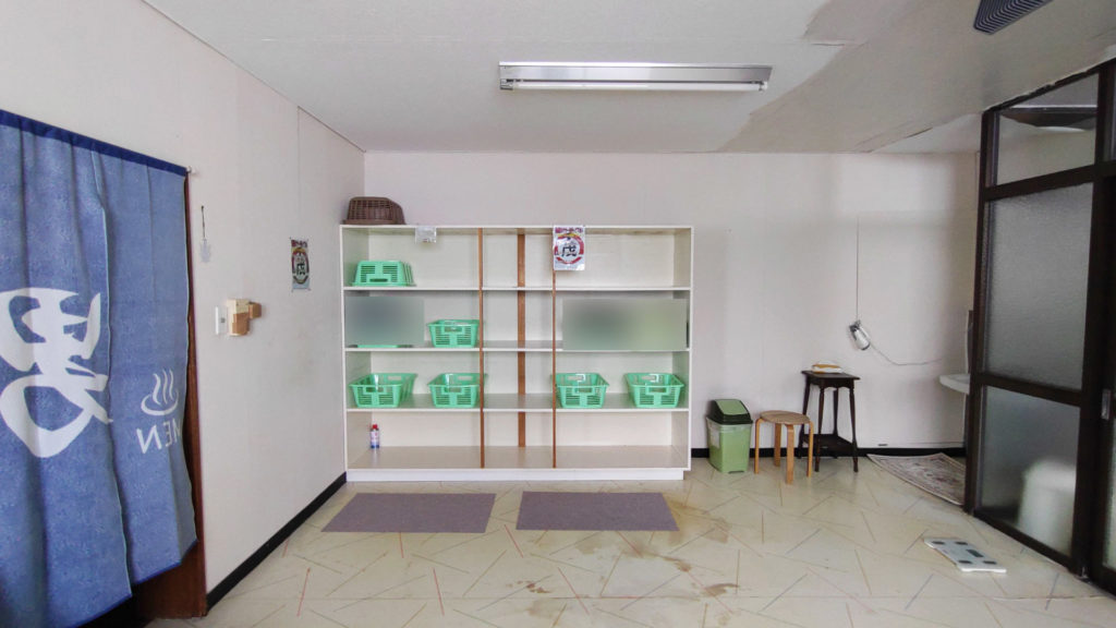 脱衣所にはロッカーは無く棚とカゴのみのシンプルなタイプ。