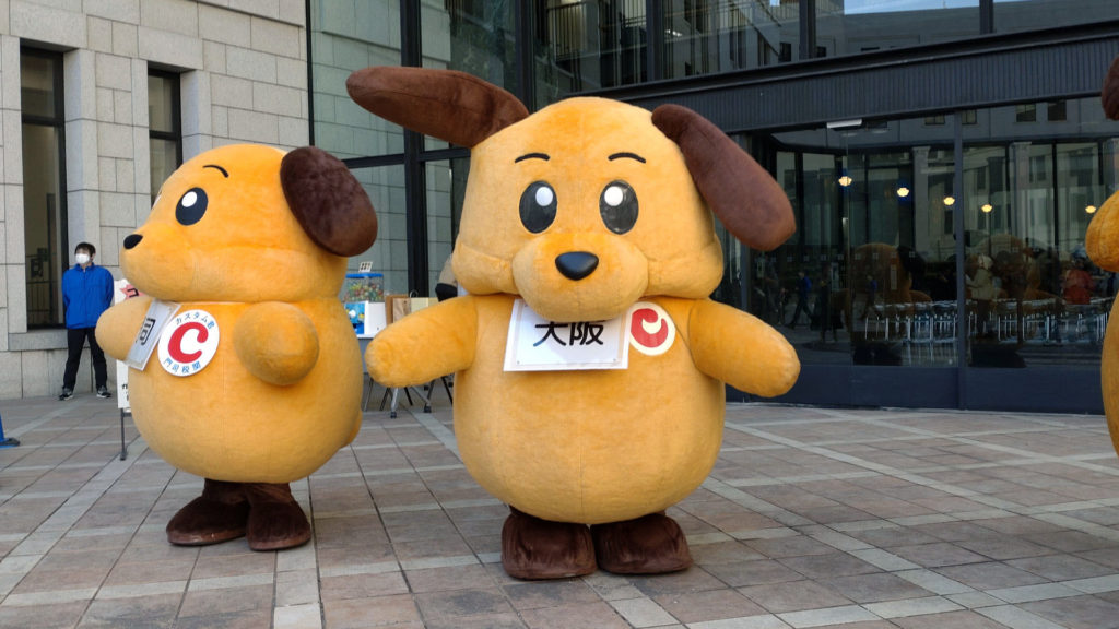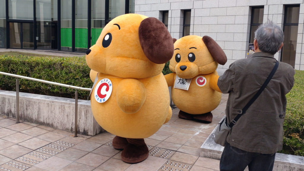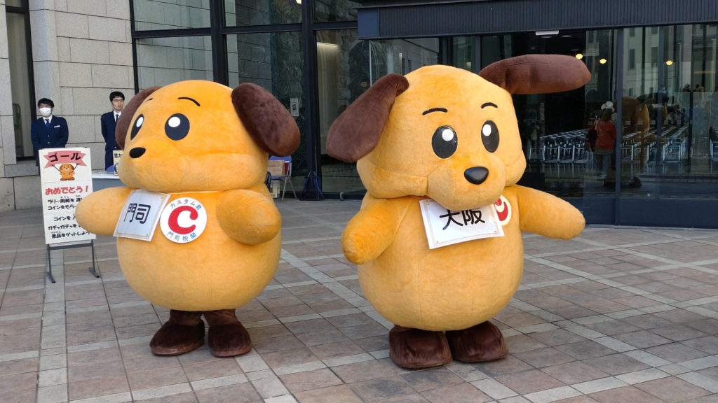 カスタム君(横浜税関)とカスタム君(大阪税関)が並んでいます(同じキャラクターのはずですが)。