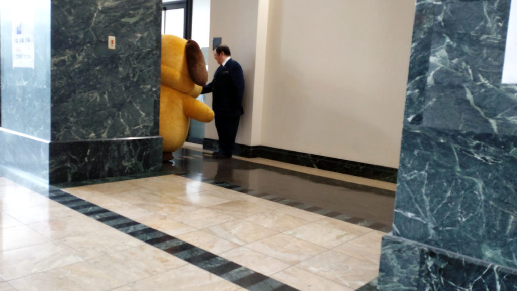 東京税関本関にある情報ひろばにいるカスタム君はやけにデカくて大ボス感あります。東京税関情報ひろばについてはこちらの記事にて。